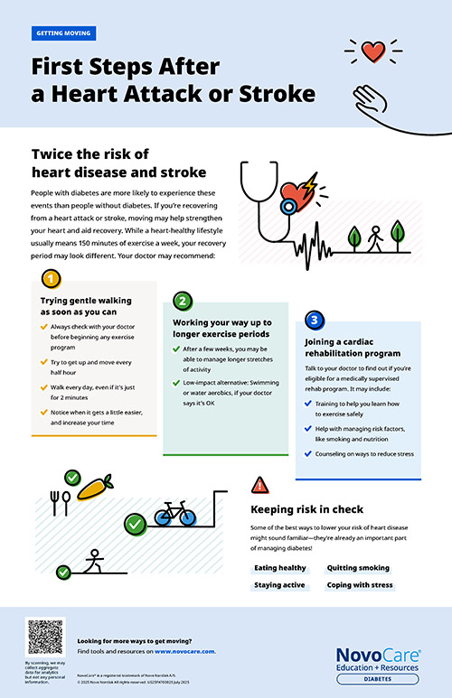 People with diabetes are more likely to experience these events than people without diabetes. If you’re recovering from a heart attack or stroke, moving may help strengthen your heart and aid recovery.