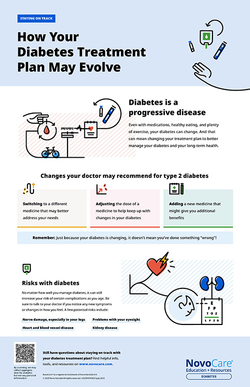 Even if you are doing everything right, diabetes may seem never-ending. It’s just the nature of the condition. As time goes on, your diabetes care plan may need to change because your body is making less insulin. By working with your diabetes care team, you can discuss options that can help you continue to manage your diabetes. Your health care provider may recommend you start, change, add, or increase a medicine if healthy eating and being active isn’t controlling your blood sugar.